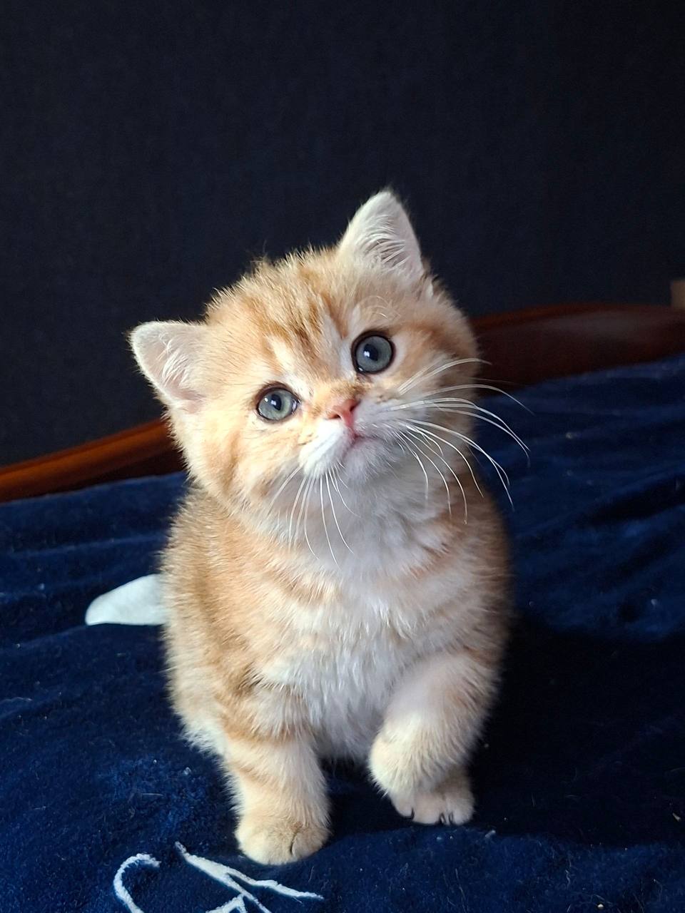 Alan is a breathtakingly handsome young boy who perfectly represents the iconic British Shorthair breed. In his portrait, he displays the hallmark features that have made these felines beloved for centuries, most notably his dense, plush coat that looks almost like velvet and his endearingly round face. His warm, amber eyes gaze out with a mixture of sweetness and calm confidence, a typical expression for a breed known for its stoic yet affectionate nature. As a young male, Alan already shows signs of the powerful, compact build that will eventually make him a sturdy and impressive adult. Unlike more lithe breeds, the British Shorthair is built for substance, and even as a kitten, Alan has a wonderful “teddy bear” quality that makes him nearly impossible to resist.
