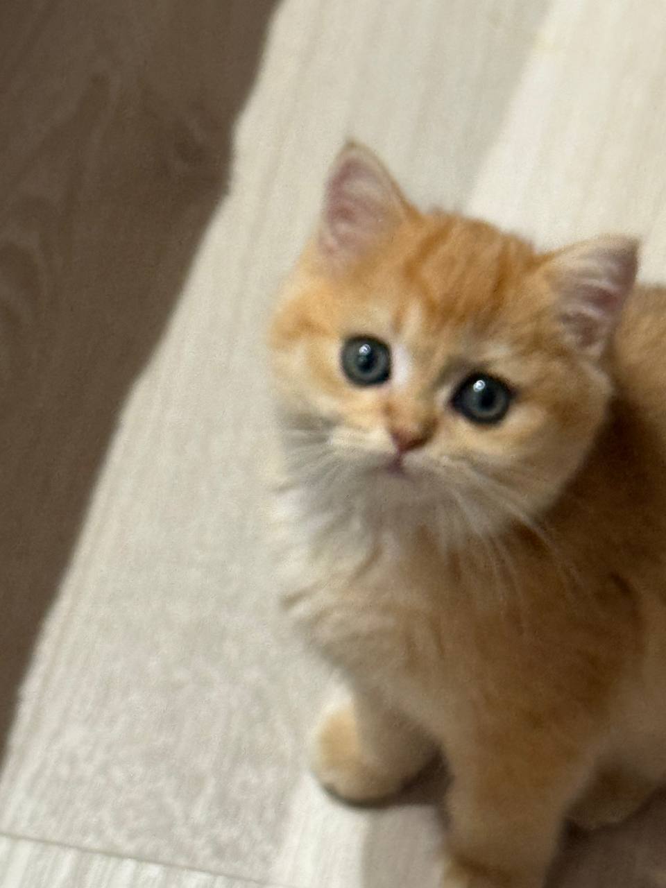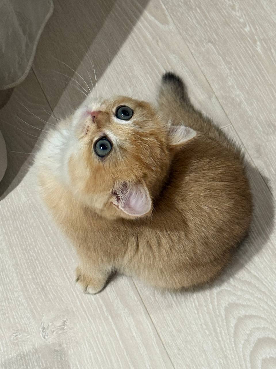 Fiona is a truly exceptional example of the British Shorthair breed, representing a perfect blend of elegance, health, and early-stage training. At just 2.5 months old, this golden female kitten is at the peak of her “kittenhood,” full of curiosity and playfulness, yet already demonstrating the calm and composed demeanor that the British Shorthair is famous for. Known for their sturdy build and plush, dense coats, this breed has captured the hearts of cat lovers for centuries, and Fiona is a shining ambassador of these traits.