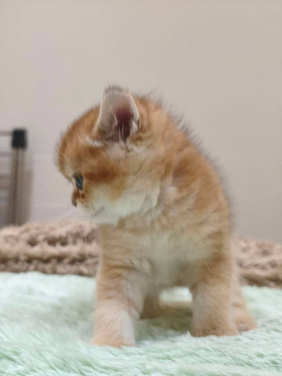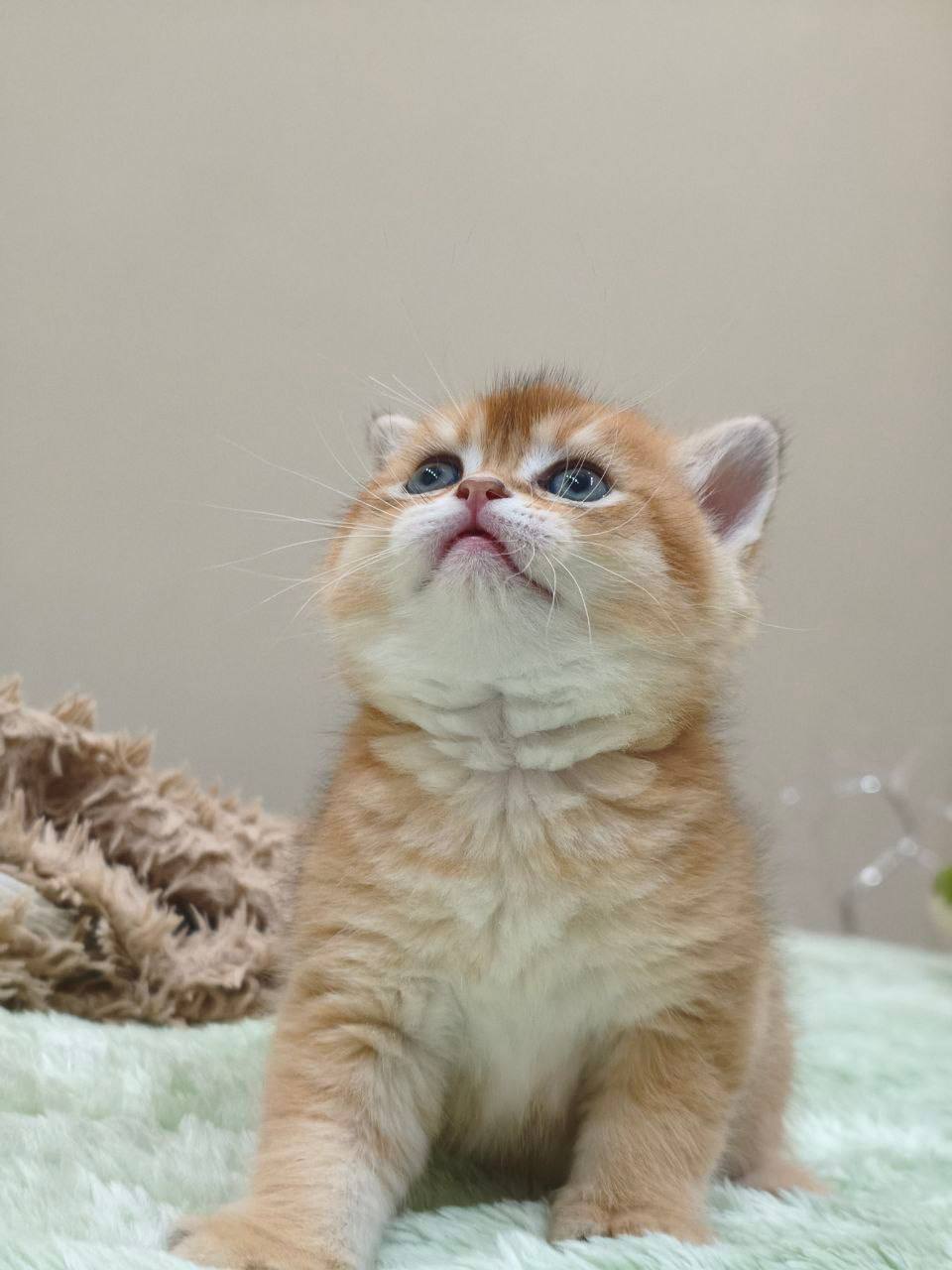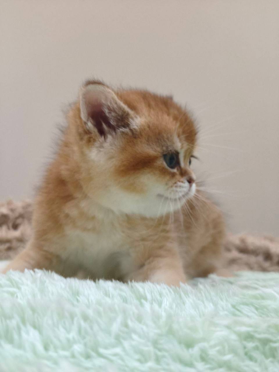 Meet Gucci, a truly remarkable young kitten who embodies all the most desirable traits of the British Shorthair breed. At just 1.5 months old, Gucci is already a standout specimen, boasting a rare and radiant gold coat that sets him apart from the more common blue or lilac varieties often associated with the British Shorthair. This golden hue gives him a regal, sun-kissed appearance that is sure to capture the heart of any feline enthusiast. As a male, he is expected to grow into the sturdy, muscular, and “cobby” frame that the British Shorthair is world-renowned for, complete with those iconic chubby cheeks and large, expressive eyes that define the breed’s “teddy bear” look.