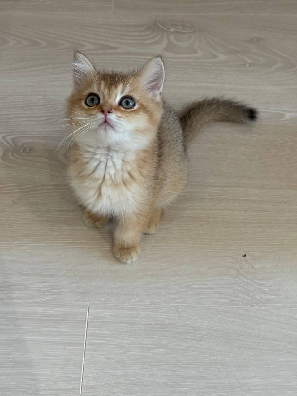 One of Jack’s most captivating features is his rare and beautiful gold coat. While many people immediately think of blue or grey when they hear the name British Shorthair, the gold variety offers a warm, sun-kissed aesthetic that is absolutely breathtaking. His fur is thick and plush, a hallmark of the British Shorthair, making him feel like a living teddy bear. As he matures, he will likely develop the characteristic round face, powerful chest, and thick “otter” tail that define the breed’s iconic silhouette.