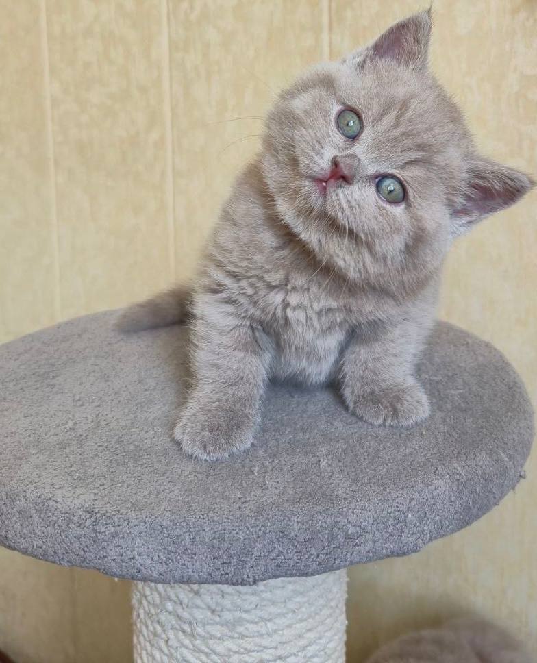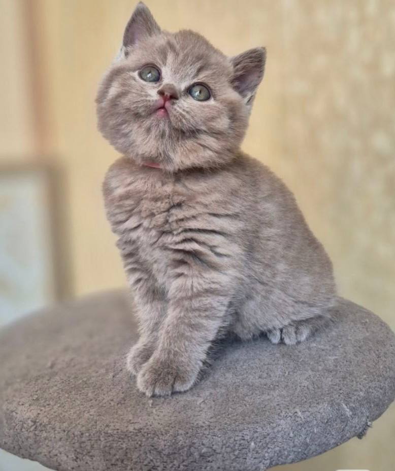 Meet Nala, a breathtaking lilac female British Shorthair who is currently capturing hearts with her round, expressive eyes and plush, velvety coat. At just two months old, Nala is already a perfect example of why the British Shorthair is one of the most beloved breeds in the world. Her lilac fur is a sophisticated, warm-toned gray with unmistakable hints of lavender, creating a soft, dreamlike appearance that is as pleasing to the eye as it is to the touch. This density of coat is a hallmark of the British Shorthair, giving them their iconic “teddy bear” look that remains popular generation after generation.
