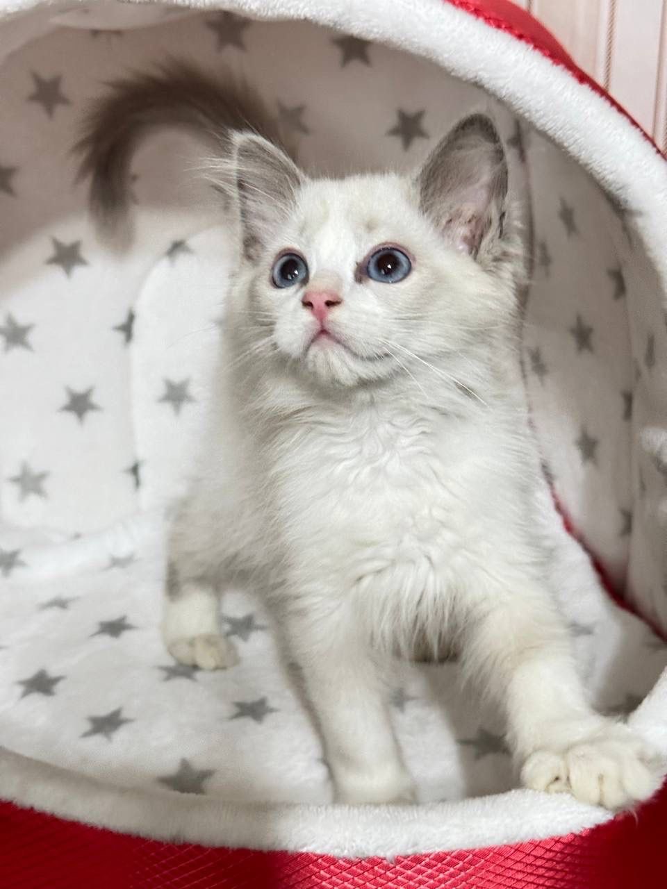 This incredibly cute kitten is a Ragdoll, a breed renowned for its affectionate nature, striking blue eyes, and soft, semi-longhaired coat. Based on your request, we can refer to this little boy as Tucker, an adorable Ragdoll kitten. These cats are one of the largest domestic breeds, but they are gentle giants, slow to mature and often not reaching their full size until they are around four years old. Tucker, like all purebred Ragdoll kittens, was likely born completely white, with his beautiful colorpoint markings developing over his first two years of life.